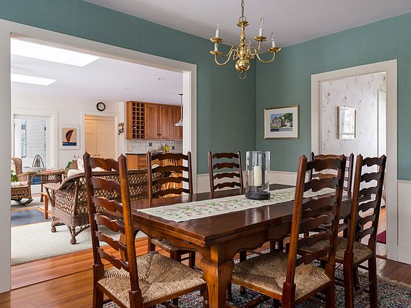 Located in the seaside village of Mattapoisett, this distinctive seven-gabled Antique is a short walk to the beach, wharf and village amenities. This fully renovated home has been impeccably maintained and offers a blend of classic detailing and modern craftsmanship. The custom kitchen with shaker-style cherry cabinetry and soapstone counters adjoins a bright and cozy family room with south facing windows. Solid hardwood floors, formal dining and living rooms, den, full bath, mud room and home office make up the first floor. Four bedrooms, sitting room, new master bath plus large bonus room provide comfortable living space on the second floor. Exterior features include a screened porch-a perfect place to spend a warm summer day, an attached two-car garage, bluestone patio and garden shed. Private backyard is surrounded by gardens and trees.