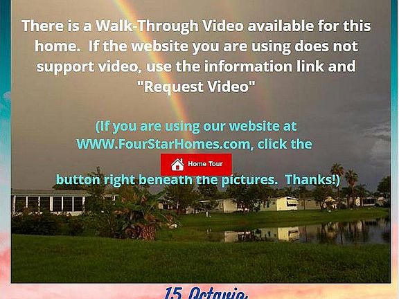 Welcome to 15 Octavio! This home has ALREADY been priced UNDER market value due to some interior work that needs to be repaired. Prior to a new roof being installed in Dec. 2020, there was some water damage to the living room walls and part of the subfloor. (Addendum, 4/12/22: We also found out the shed was UNAPPROVED and WILL NEED TO BE REMOVED) This is a one-owner home being offered furnished. The home is complete with a rear deck overlooking one of our small lakes as well as a 200 Sq./Ft. Florida room in the rear. The central air was replaced in 2019 and the water heater was replaced in 2021. There have been many other improvements made during the course of time but there is still plenty of room for you to add your own personal touches. And yes, this home will come with a baby grand piano!