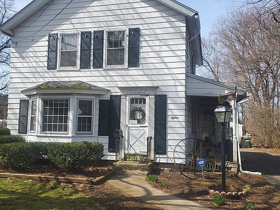 A little piece of paradise on this 3.25 parcel that has established  veggie garden beds, perennial flower beds every were you look and multi fruit trees. This home sits on dead end street with river frontage on the Quaboag River if you enjoy fishing or just a great place to relax this may be it. Town by laws say it is approved acreage for livestock ask for info if interested. Two car garage with loft.  Home has country kitchen, formal dining room, living room, bath and three season family room with wood stove so it can be used year round. 3 bedrooms on second floor. Home needs updating and work which price reflects.