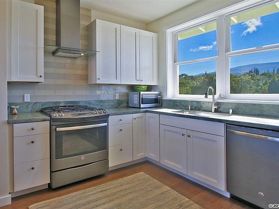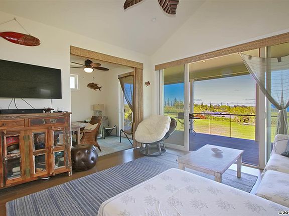 Overlooking the North Shore and West Maui mountains this quality crafted 2 bedroom and 2 bath home is nestled in the gated community of Maunaolu Estates in cool upcountry Maui. Ocean and Mountain views can be enjoyed from the large Ipe wood lanai and sprawling 2+acres of lawn. Custom finishes including custom tiled showers and granite countertops create a warm space filled with light. The main living space is on the 2nd story and a large storage area and garage are on the ground level. The existing structure was built as the guest cottage with the potential to build the main home in the future. Privacy and space abound with the future main house site located where prime views can be appreciated. Several fruit trees and tropical foliage are well established.