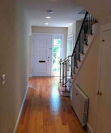 Beautiful, spacious, 3 flr apartment with all new hardwood floors, Granite/SS kitchen, open floor plan, Fireplace, on-site laundry, Finished playroom in the basement. Five minute walk to Greenwich train station and downtown Greenwich Ave with shopping, restaurants, etc. Across from new Equinox fitness club, 1 garage space + off-street parking, backyard BBQ patio area. Brand new energy efficient gas boiler and HW heater. New windows and insulation. Secure Storage.