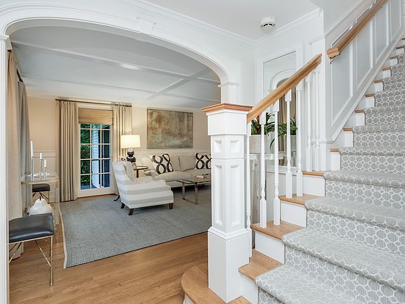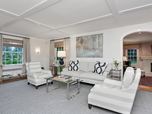 Amazing home in the sought after Old Hill area of Westport that is conveniently located near downtown, and commuting options by car or train. Meticulously updated with top finishes, custom details and fine craftsmanship. Picture perfect inside and out. Great room scale and flow. French doors lead to gorgeous outdoor terraces and professionally landscaped property offering privacy and entertaining enjoyment. White Carrera marble kitchen shares an island breakfast bar with a family room that boasts high ceilings, custom built-ins and a wall of windows and French door leading to the bluestone terrace and sun-filled large lawn area. The study has a fireplace, built-ins and a literary alcove that opens onto the private, covered terrace. The gorgeous living room with large fireplace is meant to be enjoyed with it's custom butlers pantry and easy access to all other rooms on the main level including a beautiful and bright sunroom that opens to the terrace. The quality craftsmanship extends to the second floor where there are four bedrooms and four baths. The spacious master bedroom suite has a full bath, ample closets, and a private balcony overlooking the back tree lined property. The spacious third floor was finished with a full bath and has flexible use as an in-law, au-pair or guest bedroom suite, home office, gym, or whatever suits your needs. A finished lower level has a playroom, bath and full laundry room. A two car garage, gravel driveway lined in cobblestones and landscaped property with white picket fence and finishes this quintessential New England home offering. Move right in and start enjoying all the near by Westport amenities, including the vibrant downtown restaurants and shops, the beaches, schools and all the different lifestyle activities there are to choose from.