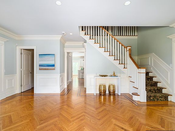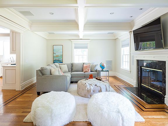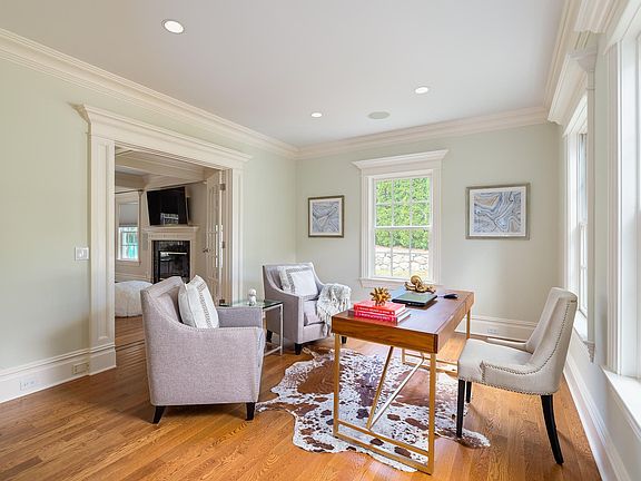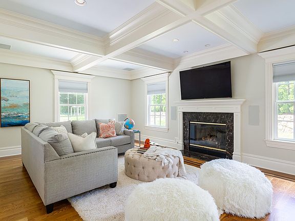 Stunning five-bedroom Colonial is nestled on a manicured .29 acre with terrace, fire-pit and fenced-in yard at the end of private drive within walking distance to school. Beautifully appointed interior boasts hardwood floors and high ceilings in well-scaled rooms with smart home technology. Features herringbone patterned wood floor in gracious entry; elegant dining room, living room with fireplace; butler's pantry; granite-clad, eat-in kitchen open to family room with fireplace and library/office. Second floor offers serene master suite with fireplace, dressing room, walk-in closets and spa bath; en-suite bedroom, two bedrooms, full bath and laundry. Play/media room with fireplace, fifth bedroom, full bath, mudroom and two-car garage compose walkout lower level.