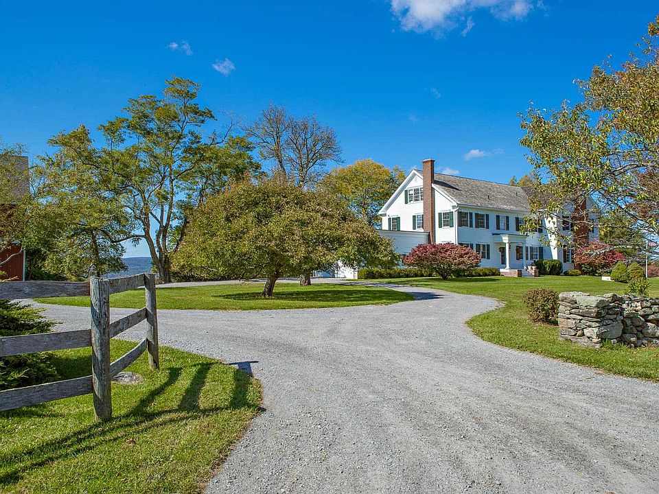 Privately situated at the top of esteemed and elegant Quaker Hill, Fieldcrest, is a beautiful treasure. Situated on a breathtaking hilltop meadow, this house and property enjoys vast views of open fields and western mountains. Expanding spaciously from a central hallway into high-ceilinged, light-infused rooms, Fieldcrest's gracious proportions give it a feeling of both elegance and welcome. And there is not a window without a beautiful or heart-stopping view. The most breathtaking are to the west and reach as far as the Catskills. A sunporch on that side is surrounded by floor to ceiling windows and opens to a wrap-around porch with both covered and uncovered sections. Spectacular sunsets captivate. With wide, sable-brown floorboards, generously sized windows, five fireplaces with historic mantelpieces, this house seems steeped in history, though modern systems are throughout. The main staircase is generously proportioned, as are the halls throughout the house. The upstairs landing has its own view, and a large space for reading, a desk, or game table. Two enormous en suite masters each with fireplace, and beautiful views of surrounding pastures and western mountains. A guest and family wing includes three bedrooms and two baths all with beautiful vistas. Paneled library, handsome study with fireplace and a dry bar adjacent to the lovely living room with fireplace add character and convenience. A very generous dining room with fireplace completes the first floor. Below, the ground floor provides a vast storage space of spacious rooms, some with their own extraordinary views, including a yoga room, a huge convertible space for family or guests, or a stunning office with handsome brick patio over western views. Additionally, large finished rooms exists in the property's barn near the tennis court. All make Fieldcrest the perfect retreat and ideal for family gatherings and visiting guests. Proximity to Metro North as well as to the charming village of Pawling position Fieldcrest perfectly in one of the most beautiful, convenient, and coveted Hudson Valley locations. 24 to 48 hour notice for accompanied showings.