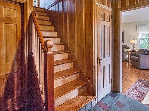 Gleaming hardwood floors and original details highlight this three-bedroom, one-and-a-half bath home. Town of Harrison and post office is Purchase#xD;#xA;#xD;#xA;Built in 1935 and sitting on .27 acres, this home has 1,654 square feet. The entry foyer has a powder room, access to the garage, and the living room with wood-burning fireplace, a slate hearth, and built-in shelves. A paneled den sits at the end of the living room. The eat-in kitchen has a breakfast area which leads into a formal dining room with a wall of glass block bringing in diffused light. Windows look out into the back yard.#xD;#xA;#xD;#xA;The stairs to the second level are hardwood with wood railings and paneling. Upstairs, three bedrooms share a hallway bath. The master has two closets and a storage area; the other bedrooms have one closet each, and the hallway has two closets.#xD;#xA;#xD;#xA;#xD;#xA;Mature plantings, central air conditioning, a round slate patio in the rear, and a one-car attached garage complete the home.