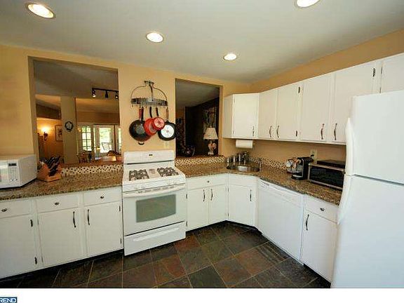 Walk to town or Village Park from this GORGEOUS Society Hill townhome where upgrades abound. The renovated eat-in kitchen features a new dishwasher 2014, granite counters, mosaic tiles, slate floors and deep corner sink. Beautiful wood floors 2014 accent the living and dining rooms. The rare and sought after family room, which can also be used as a guest bedroom, is accented with French doors that lead to the newly extended patio where you will enjoy open space surrounded by seemingly endless trees. Upstairs features two generously sized bedrooms, each with its own private bath and large closet space. Custom moldings, built-ins, laminate flooring 2012, AJ Perri furnace and water heater 2012 are just some of the 110,000 in upgrades, renovations and additions that make this home move-in ready. An easy commute to Princeton, minutes to Rt. 206, Rt. 1, 295 and 195 in addition to easy access to mass transit to NYC and Philly make this townhome purely desirable!