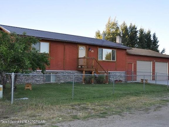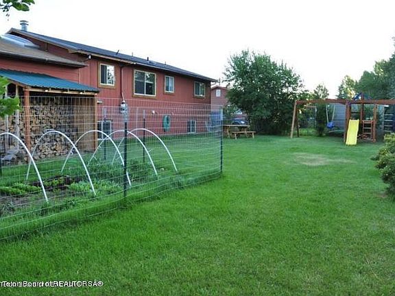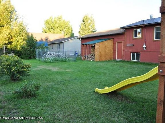 In town of Pinedale and room for the family. This raised ranch home offers the additional space of a second level but not the feel of a basement. Living room, full dining space, kitchen with pantry, 2 bedrooms and 1 bathroom on top level. Downstairs is a nice family room with a wood burning stove to keep the home cozy and warm. 1 bedroom and a bathroom down along with an office/craft room,large laundry room with additional storage for freezer and more. Oversized 2 car garage and a large fenced yard with kids high quality wood playground set that stays for future kids fun. House in good condition with newer carpet, flooring, paint and windows. Call soon