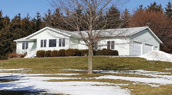 This is a 3.2 acre corner lot property in pristine condition. The owner was extra meticulous w/ everything he owned. The interior features a very large LR/DR area w/ miles of views, a modern kitchen, & a large entry area. The extra wide paved drive leads to an attached, over sized, 2 car garage. The basement is insulated, abundantly lighted w. several closets, overhead walkout door, 2 workbenches, & separate heating zone. The 24x24 steel pole barn is shelved, insulated, sheet rocked, & has workbench w/overhead & side doors. The huge pond is stocked & several feet deep at center.