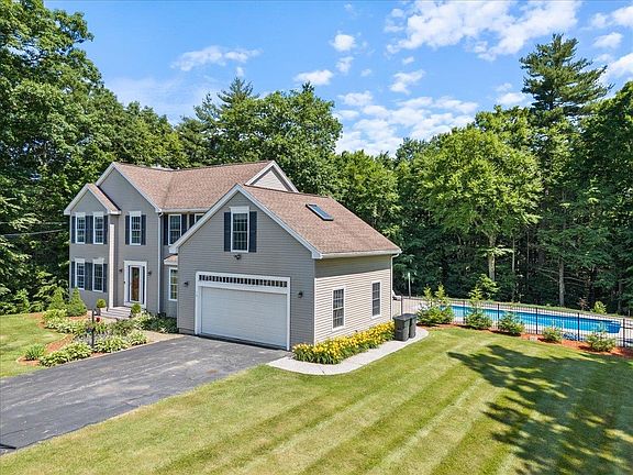 Welcome to this stunning colonial home nestled in a serene cul-de-sac, perfect for anyone seeking a blend of comfort and elegance. Situated on 1.5 acres, this meticulously maintained property features three bedrooms and three bathrooms, including a spacious primary bedroom with an en-suite bathroom and walk-in closet. The first floor offers a seamless flow from the expansive foyer to a formal dining room and a spacious office. The generous kitchen, complete with a casual dining area, opens into a cozy living room. A fireplace adds warmth and charm on chilly New England nights. Enjoy the convenience of first-floor laundry and an attached two-car garage with finished space above enhanced by skylights for abundant natural light. This home has been upgraded with a new state-of-the-art water treatment system (2021) and an American Standard gas furnace (2024), ensuring modern efficiency and comfort. Step outside onto your low maintenance Trex deck and down into your own private backyard oasis, featuring a beautiful in-ground pool—perfect for summer gatherings or a relaxing retreat. Ideally located for easy commuting: just 50 minutes to Boston, 45 minutes to Manchester, and 35 minutes to Portsmouth! Open houses to be held on Saturday March 15th and Sunday March 16th 12:00-2:00pm. Offer Deadline Monday March 17th @ 5pm.