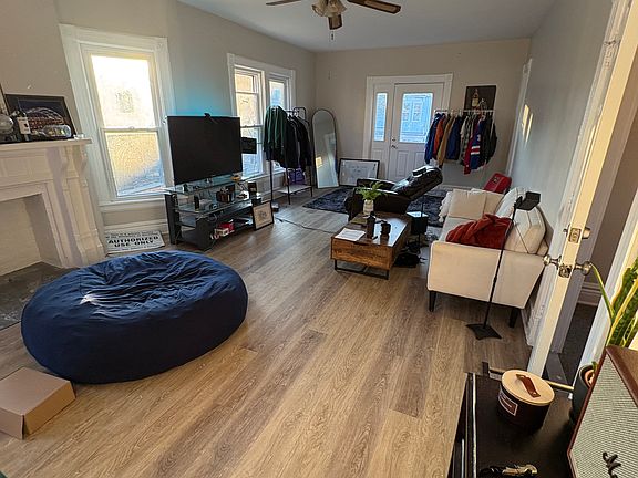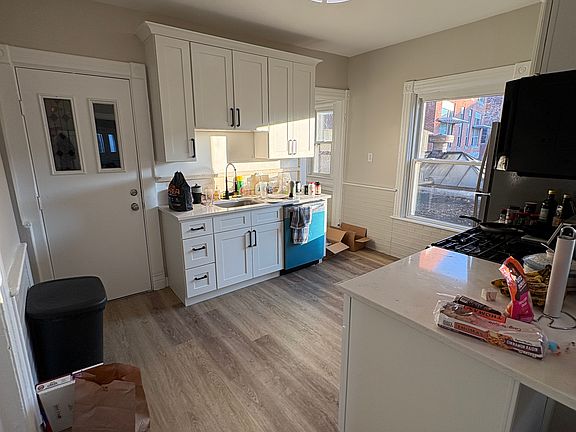 This beautifully remodeled second-floor apartment offers three spacious bedrooms and one modern bath, featuring high-end finishes throughout. Enjoy a bright, open kitchen with quartz countertops, stainless steel appliances, and fresh contemporary updates in every room. The home includes two inviting porches perfect for relaxing along with off-street parking and a dedicated, separate laundry area for added convenience. Move-in ready and designed with comfort and style in mind.