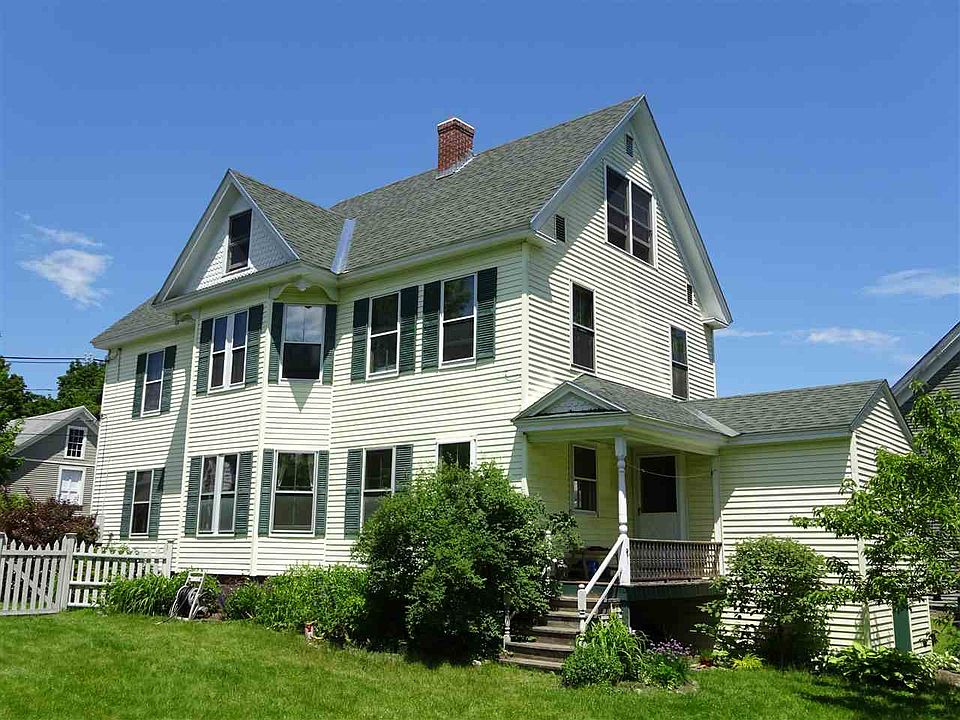 Excellent value and a great family home, just a few minutes from downtown Keene and a block away from the elementary school. Delightful, recently renovated, Kitchen with lovely built-ins, abundant storage, work island, prep sink, great pantry and room for a large dining table too. Sunny dining room with fireplace. Wide archway separating the LR & DR. First FLR full bath, and mudroom/utility room. Second floor with all 4 BDRS, one with separate walk-in dressing room, and a full bath. In 1997, a new stairway was built, a skylight was added and part of the 3rd floor attic area, was beautifully renovated into 2 very nice large rooms, which would be perfect for an office or a studio. Rough plumbing was brought up to the 3rd floor. Almost all hardwood flooring and natural woodwork in this home. Manageable side yard with patio, is fenced in and there is a side and front, covered porch. New architectural shingle roof installed by Guyer Roofing in 2016. Easy care vinyl siding and move in ready. Come take a look!