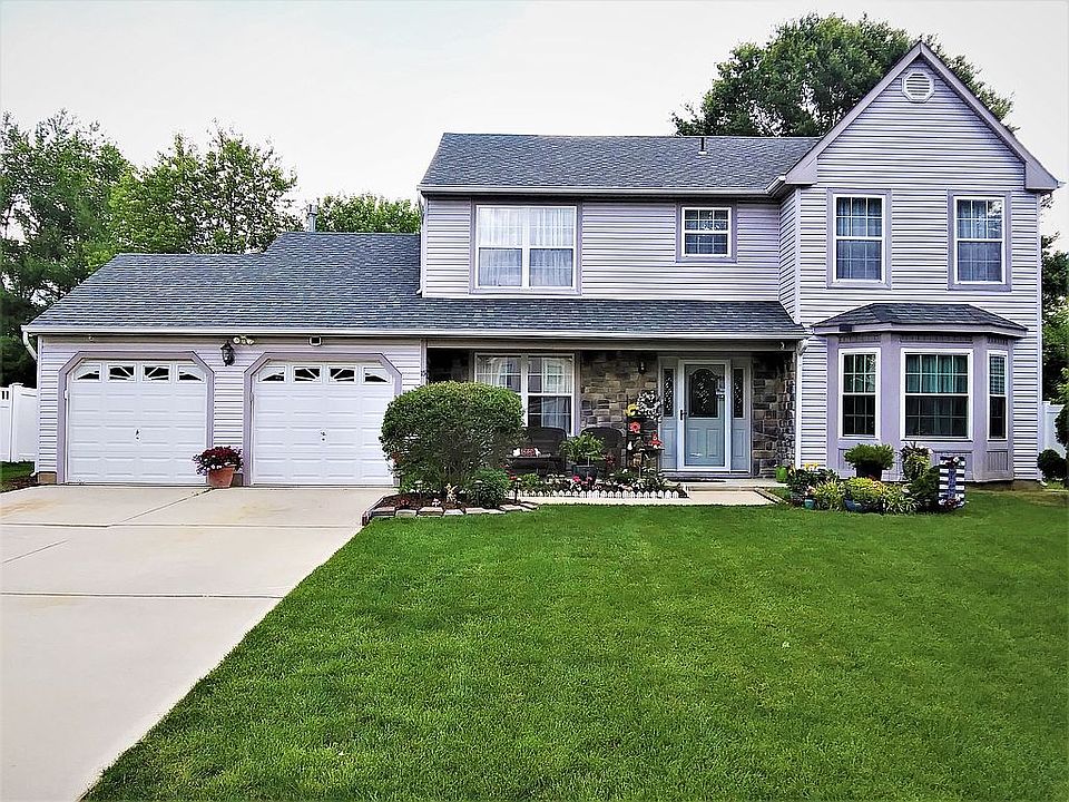 Beautifully maintained 4 bedroom, 2.5 bath colonial home on a cul de sac location boasts 2,288 square feet of living. Step inside to the center hall foyer with a coat closet and half bath. To the right is the spacious formal living room with wall to wall carpet and a bay window. To the left is the formal dining room, leading to the large kitchen that has a full appliance package. The gas convection oven/stove and refrigerator are stainless steal and just a few years old . The family room has built in wall shelves on either side of the fireplace, which has a blower fan to distribute heat throughout the room, as well as a ceiling fan with light and remote. The laundry room has a sink, washer/dryer, and access to the back yard which has a decorative iron fence around a tilled garden. New vinyl fencing was installed along the back property line. Upstairs you will find the large master bedroom, a master bath and a walk in closet. This room and the bedroom across from it have hardwood floors, as well as the hallway. The main bath has been tastefully redone with a large double sink vanity and a built in linen closet. The other two bedrooms have fresh paint and wall to wall carpet. All carpeting throughout the home has been professionally steam cleaned and protected. This home has a two car attached garage with remote openers and four car parking in the driveway. There is a cement patio out back with access from the family room siding glass doors. The cut glass front door and sidelights have been replaced along with the storm door. And the roof is brand new. The high efficiency heater ,A/C unit, and water heater are all brand new. The entire home has a professional monitored alarm system with direct wired fire protection as well.