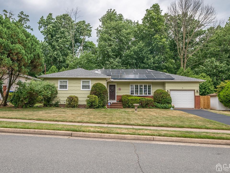 Gorgeous North Edison RANCH featuring 3 bedrooms, 2 full remodeled baths, 1 car garage, fully finished basement, beautiful in-ground swimming pool, concrete patio and fence in private park like yard! 2020 replaced Hot water heater; 2018 Roof, and Furnace, 2017 renovated custom eat-in Kitchen with Granite counter tops, ceramic back splash andfloors, pendant lighting over peninsula counter top, soft closure Rev-a-shelf pull out cabinets, Maple cabinetry, high efficiency duck out exhaust fan, high end appliances; Hardwood floors in most area of the main level; enclosed porch off kitchen; professional landscaping; recent painted exterior and interior walls; cozy hallway updated bath with double sinks; master bath shower with 2 body jets; 2019 solar installation saves lots of electricity $$! Recent replaced solid wood bedroom doors and more... Excellent schools, close to Metro park train station to NYC; parks, convenient to all major highways! Won't last!