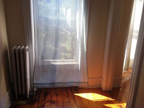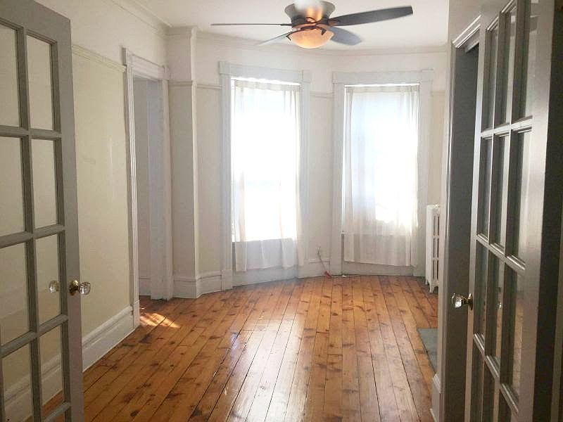 Country charm in the city in this light and bright top floor! Pine plank floors and fresh paint throughout. Sensible layout features central living/entertaining space with pass through to dining area adjacent to kitchen. Kitchen features stainless steel appliances including Whirlpool fridge and Goldstar microwave, charming cabinets with tile counters and back splash, and unique food prep island. Picturesque double window in the dining area and additional window in the kitchen allow natural light to flow into the open living space. Sunny south facing bedroom with closet and bay windows, captive 2nd bedroom with south facing window works as den/nursery. Tile bath with Euro style sink. 4 ceiling fans add to the light and airy ambiance! Near 5th Ave with its plethora of shopping and dining choices, and near the Atlantic/Barclay's major train hub. Charming! Sorry no dogs and no smoking.