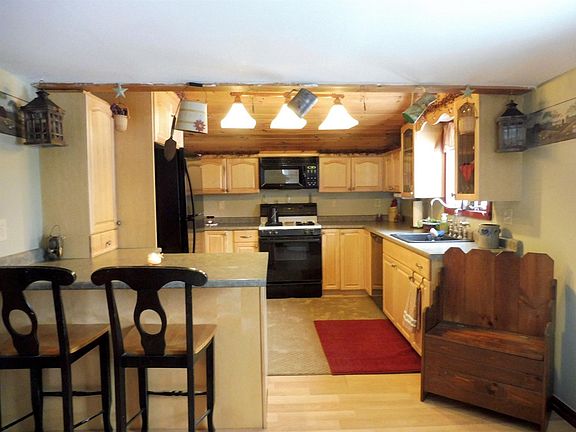 This lovely and spacious 2-Br home has been very tastefully updated.It has a great overall ambiance. A work in progress all of the big items are done for you. Only finishing touches remain. You will find yourself spending time in the new 20' x 10' eat in kitchen with cozy propane stove. Formal DR and LR have HW floors. LR has a gorgeous stone fireplace with pellet insert. An added touch is wood on many of the ceilings. Each of the 2 BR's has a room off of it, one could be a 2nd bath or WIC, the other a den or nursery. Large fully fenced back yard. Garage with deck off the back of it where there once was a pool. Deck with ramp to house. All newer windows, doors, 200 amp elec..