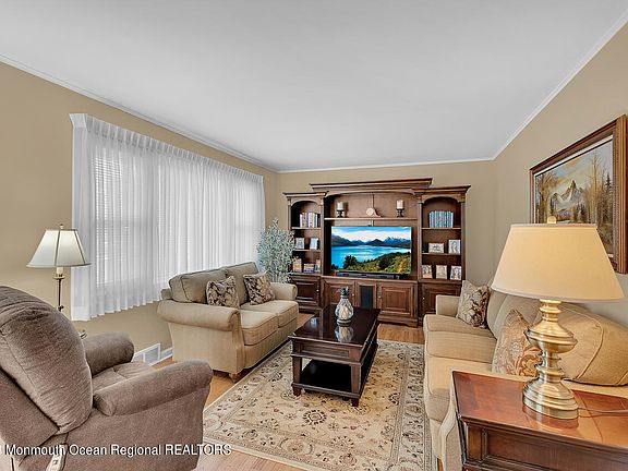 This immaculate Lincroft ranch is perfect if you are looking for turn key and low maintenance! Located in ideal neighborhood this home features beautiful hardwood flooring, eat in kitchen with direct access to patio, full basement, and professionally landscaped spacious yard w/ front irrigation system and storage shed. Conveniently located near parkway, major transportation, shopping, beaches and Red Bank this is a fantastic condo alternative without the HOA fees!