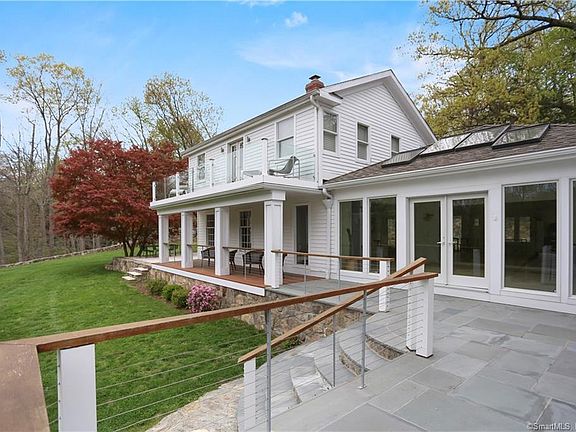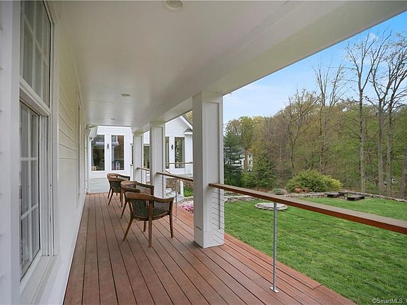 Stunning French country sophistication tucked away on a cul-de-sac in the Old Hill Section of Westport.What a treat for the entertaining family! The main floor has an open floor plan with wooden beams,fireplace, hwd floors,and magnificent windows with 360 degrees of the outdoors. Modern chef's kitchen with wood burning pizza oven, expresso coffee machine, Miele SS appliances ,wine cellar with a glass floor to enjoy your collection. The main bedroom ensuite with a soaking tub, shower and his and her sinks located with private staircase.. 2 addl ensuites plus 2Brs w/shared bath with separate sraircase. Very large family room with vaulted cieling and walls of glass with view to woods and Eartplace. nature center( which is accessible from cul de sac. 3 car garage , walk In basement with loads of storage. Beautiful outdoor patio with travertine and plenty of room for entertaining with privacy and mature magnolia trees. There is room for pool..There's an outdoor kitchen with a separate rotisserie pit for all your BBQ needs. Entire house renovated and expanded in 2008 and upgraded since.