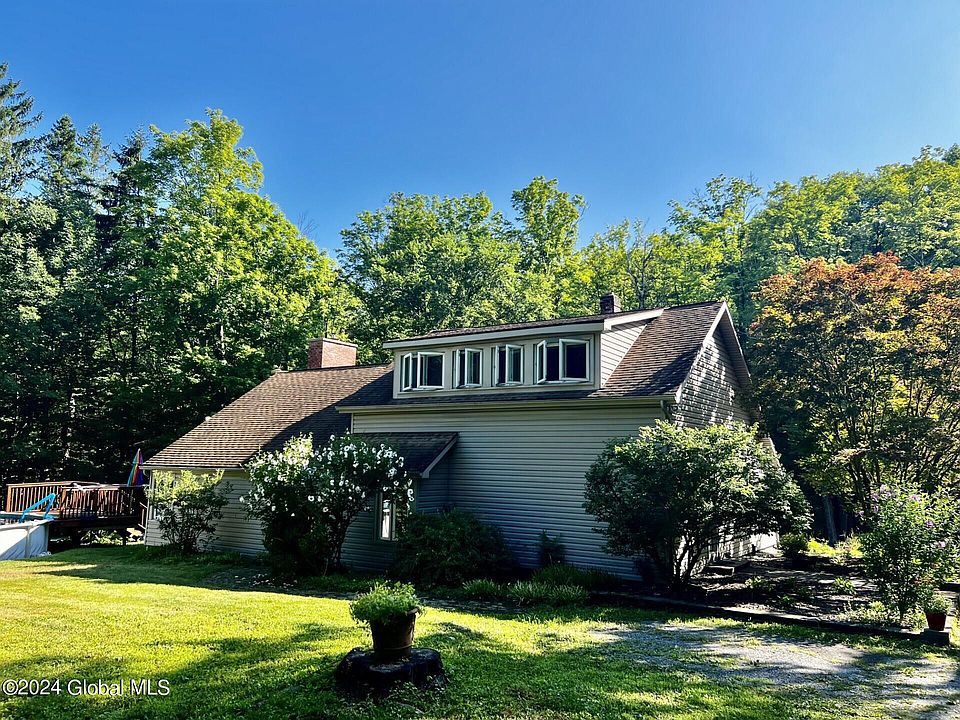 Lovely contemporary cape nestled on over 8 acres. Wynantskill Creek runs past property which gives this beautiful home a peaceful feeling. When water is high enough, you can swim in it. Custom built, newer vinyl siding, some triple pane windows, granite counters, Oak hardwood floors, pond, woodstove, and Privacy Plus!!!! The land that runs up to Rt 150 could possibly be subdivided. Wood burning fireplace insert, 2210 sq. ft. living space, cool bomb shelter now used as storage, above ground pool, 200 amp electrical service, jet tub in owners bath, walk in closet, generator stays, garage has been reroofed, walk in eve storage refrigerator in mudroom and basement remain, 2 zone heat, all closets have lights, 2 of the bedroom have a wall that is a chalk wall perfect for kids! town plowed road