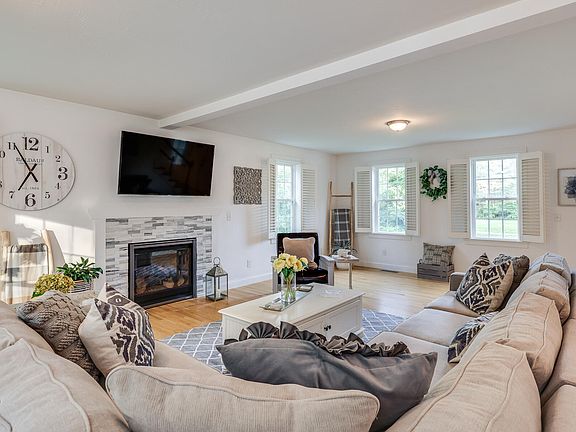 Fall in love with this charming Cape on 2 acres! This 3 bed, 2.5 bath home with a 2-car garage offers a perfect blend of comfort and elegance. The first floor boasts an open-concept layout, a gas fireplace in the spacious living room, and convenient first-floor laundry. Radiant hardwood floors bathe the space in natural light. The kitchen is a chef's dream, featuring gleaming quartz countertops, stainless steel appliances, and a pristine white design. Upstairs, a loft area awaits, ideal for a family room or additional living space. The primary suite impresses with a private bath, while two additional bedrooms provide flexibility--one currently serving as a well-appointed office. Enjoy the convenience of central A/C during warmer days. Step outside to a delightful deck and a private backyard, complete with a shed for storage. Entertain guests or simply unwind in this picture-perfect setting. Your dream home awaits!