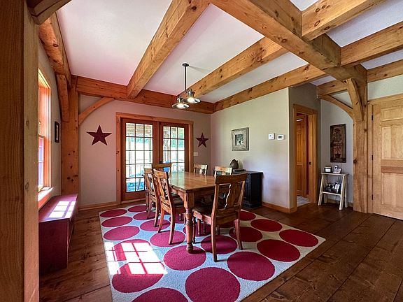 Come view this beautiful well constructed post and beam home that is privately situated on a country dirt road. The interior features wide pine flooring, cathedral ceilings and a spacious country kitchen that opens to a formal dining area with attached screen porch. A half bath/laundry is also in this first level. The second floor has 3 good size bedrooms with a full bath and a loft/study when seeking solitude. The basement offers a large, carpeted finished area for movies or games. Adding further to the property is a separate guest house with 1-2 bedrooms, living room, family room and eat-in kitchenette that opens onto an inviting inground pool. The property offers offers pastoral views with lots of lawn and inviting trails that lead from the house for year round exploring. A 2 car garage was added 5 years ago. Conveniently located to I-91 and I-89-A must see! Showings begin 9/5.