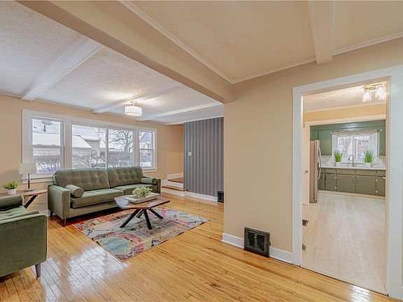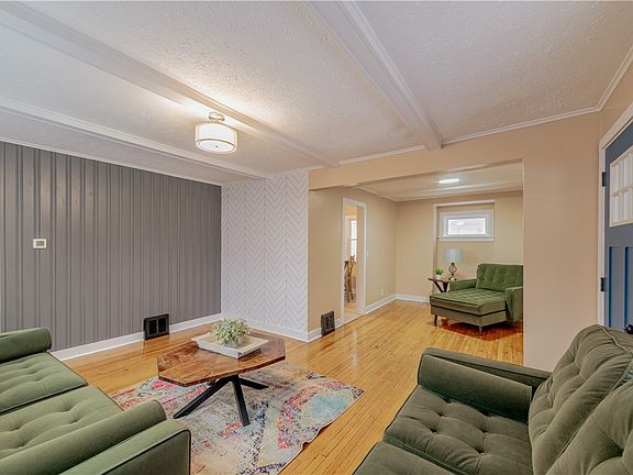 The heart of the home is the updated kitchen, featuring beautiful new quartz counters, modern finishes, and original cabinets that have been lovingly restored. The hardwood floors have been refinished to their original glory, adding to the character of the home.