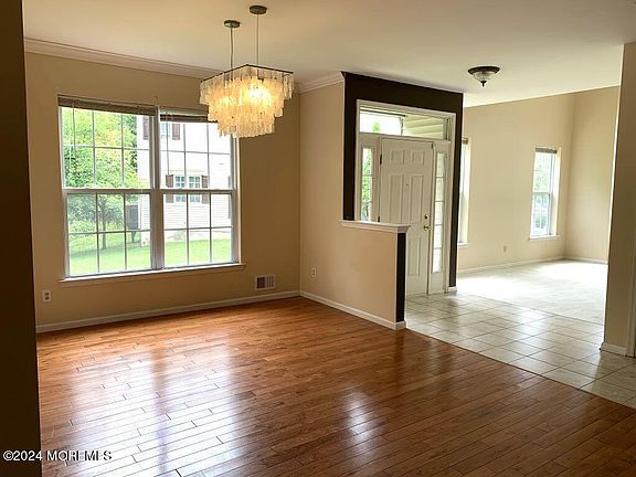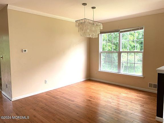 Desirable townhouse at The Woods at Holmdel. Well designed open floor plan accented by 9' ceilings. Three bedroom, two and a half bath rooms. Master bedroom with two walk-in closets and master bathroom. Second floor laundry. Hardwood floors throughout main floor, eat-in kitchen with open floor plan and fireplace. Convenient to shopping and trains/ New York City, Garden State Parkway.