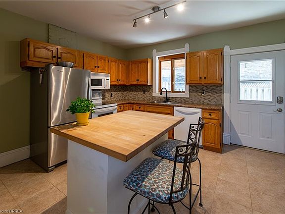 Spacious, remodelled 2 storey offering 3 bedrooms, 4 pc. bath, high ceilings, hardwood flooring, crafted woodwork, country sized kitchen with large island, built-in dishwasher, newer flooring, new countertops, lots and lots of cupboard space, main floor laundry room. Upper 3 bedrooms plus the Juliette Room. Upgraded in last 10+ years: roof, main hydro panel, furnace, central air