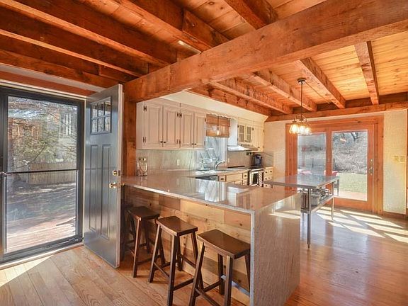 Great opportunity to secure this bright, sun splashed home in Canterbury Estates. This timber home has beautiful craftsmanship throughout and has been lovingly cared for. The kitchen is filled with fun details including granite counters with an under mount sink, upscale stainless appliances and a breakfast bar open to the dining room. The front to back living room has a wood burning stove. The spacious, level yard is partially fenced with natural plantings providing privacy. There are two decks. First floor laundry. This home is convenient to shopping, schools, commuting, golf and recreation.