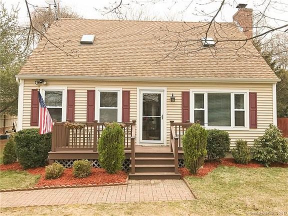 Picture perfect New England Cape Cod in Pilgrim Landing! Charming 3 bedroom, 1 1/2 bath meticulously maintained & tastefully designed. Have fun entertaining in this delicious kitchen appointed with contemporary style and fashionable color scheme. Lovely fireplace is the focal point of this bright & sunny open concept floor plan, complete with NEW laminate flooring. Dining area slider leads to rear deck with fully fenced, private backyard. Large outbuilding provides great storage for lawn equipment & outdoor toys. 1st floor bedroom plus two spacious upper level bedrooms w/ full bath. Full basement with laundry room, workshop, and partially finished area (330sf) could easily lend to additional square footage. Numerous upgrades to include NEW hot water heater & NEW dishwasher. Desirable Waterford neighborhood convenient to shopping, restaurants, parks, & highways (I95/I395/RT85). Grab your fishing poles! Only a short walk to Lake Brandegee. CALL TODAY to plan your private tour!!