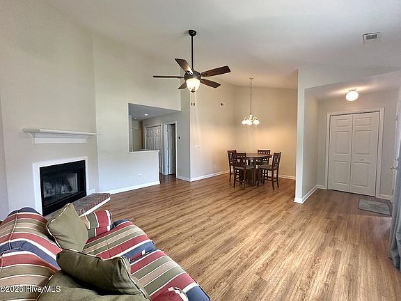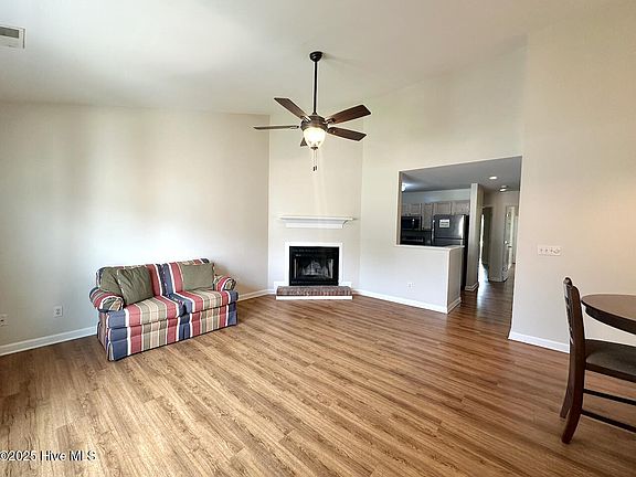This well-maintained 2-bedroom, 2-bath townhome combines comfort, convenience, and modern design in a highly functional layout. Featuring vinyl flooring throughout, the home boasts a kitchen with granite countertops and stainless-style appliances. The open-concept floor plan is complemented by high ceilings, a wood burning fireplace, and a dedicated dining area, creating a bright and welcoming living space. Step outside to enjoy the front courtyard, complete with a utility shed for additional storage. Key features include a tankless electric water heater, new HVAC system (April 2022), new windows, two storm doors, and new exterior vinyl siding. The primary suite offers a luxurious walk-in shower, while the guest bathroom includes a new tub—both recently upgraded. With quarterly pest control and a prime location just minutes from shopping and downtown New Bern, this move-in-ready home is perfect for buyers seeking a low-maintenance lifestyle paired with thoughtful updates and modern finishes. Call us today to schedule your appointment.
