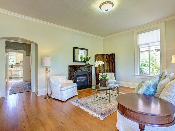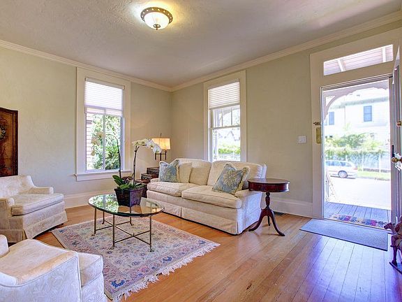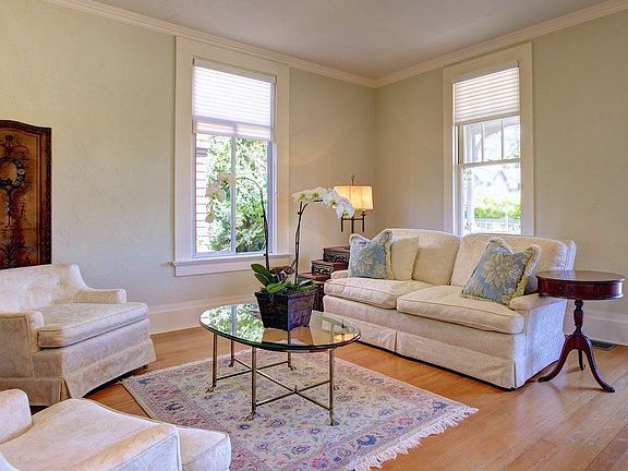 Timeless character! Turn of the century 1907 elegant Victorian extensively refurbished. Solid bones w/classic details of 10' stenciled ceilings adorned w/crown mouldings & plate rails. Warm & inviting front porch entry way, wood floors & gas fireplace. Very flexible floor plan. 3 BR/2 BA on upper floor & ideal teen room/in law suite on the ground floor w/ 2 BR/1 BA & family room with wet bar. French doors open to lush grounds & private patio.