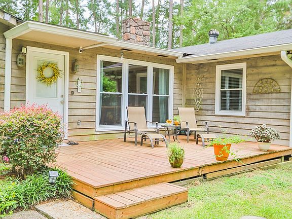 YOUR LITTLE SLICE OF HEAVEN IN THE COUNTRY. 3 bedrooms, 2.5 baths; this cabin-like home sits on 2.43 acres, is surrounded by nature, and backs up to a large plantation. The kitchen includes a large dining area perfect for your farmhouse table, exposed wood beam on ceiling, and ceramic tile kitchen floors. Master Bedroom has his and her closets and the master bath has a tiled walk-in shower and tile flooring. Cozy up with your family in the sunken den with a large stone fireplace. Outside, enjoy the large screened in porch just steps away. The second living room area consists of hardwood floors and is perfect for an office or a second TV room. Additional outdoor entertaining space provides a deck and covered patio.