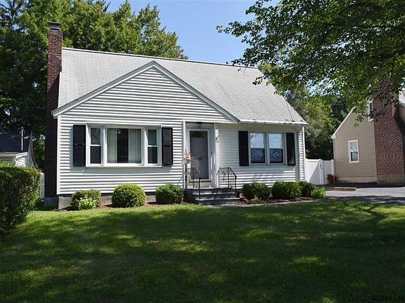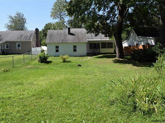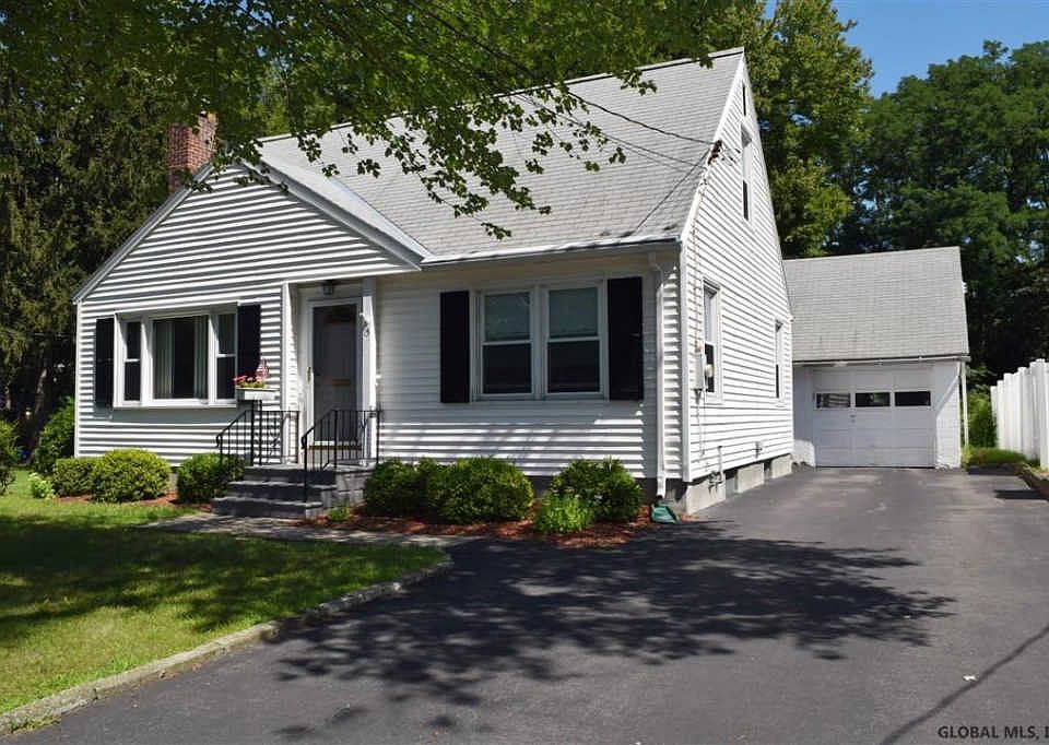 You will not want to miss out on this well maintained, affordable 4 bedroom, 1 bath cape in a super-convenient Colonie location off Fuller Road near Central Avenue on a deep, .3 acre lot with a spacious, level, fenced back yard also with an over-sized 1 car garage, paved driveway for off street parking, and a 3 season porch overlooking the yard and covered outdoor space in the open breezeway between the house and the garage. Inside offers hardwood flooring in the main floor bedrooms also with closets and overhead lighting, carpet over hardwood in the living room also with a gas fireplace and cedar closet at the front entrance, and an open kitchen and dining area space with newer/updated GE appliances included: refrigerator dishwasher, glass top range, and microwave. The full bath features ceramic tile walls and a Bath Fitter style tub/shower and a pedestal sink. The 2nd floor bedrooms offer carpet, closets, overhead lighting, and built-in shelving with access to the eaves. There is a full basement with a vintage finished room with a bar area, storage spaces, and the laundry space with the washer and dryer and freezer included. Additional home features included updated vinyl double pane windows, vinyl siding exterior, and a Weil McLain boiler for hot water heat and hot water. Enjoy low taxes of 3600.00!