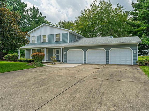 Situated on an 18-hole golf course is this ONE OWNER 4 bedroom, 2.5 bath two story aluminum sided home situated on an expansive 130X166 half-acre lot within West Lincoln-Broadwell school district! Main floor of home features an inviting tiled foyer with an open staircase, comfortable front facing living room, formal dining room, equipped eat-in kitchen with solid surface countertops, sunken rear family room with a gas log fireplace, convenient hall half bath/laundry combination, and a great rear sunporch with cathedral ceilings, overhead skylights, electric baseboard heat, and choice views of the course. Upstairs, you will find four bedrooms and a full hall bath. The primary suite measures 16X13 and boasts an adjacent walk-in closet as well as a private full adjacent bath. Property also features a large deep usable full basement, 23X35 3+ car attached garage, covered front porch, two rear poured concrete patio areas, Pella windows, updated York furnace and central air conditioning unit, NEW water heater (July 2024), whole house attic fan (sold AS IS), and all appliances to remain upon settlement for new owner(s). City water/private septic system on premises. Easy to love is this elegant traditional home with an incredibly hard to find setting!