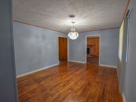 hardwood floors through most of the house. Spacious living room with chandelier, large