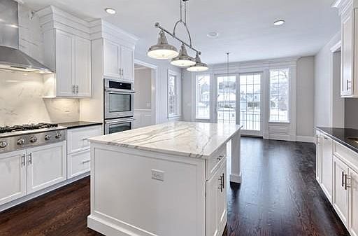 Finally there is no compromise. If you want a big lot (half-acre) in Needham Center-Look no further. You don't have to head out of town toward Dover to get the land. It's right here on Pleasant St. (at the end of Fair Oaks Pk) This home has it all! A stunning new build with all the bells and whistles in a walk-to-everything location with a huge private flat back yard. 5 bedrooms, 4.5 baths including a first floor en suite, top of the line finishes and decadent moldings. Open concept great room with coffered ceilings, granite surround fireplace and sliders to deck and yard . Gorgeous chefs kitchen includes Thermador appliances such as 48" double oven gas range with 6 burner griddle, large kitchen island and attached Butler's Pantry. Additionally, there is a large bonus room on the third floor with full bath. Two (possibly 3) car attached garage, tiled mudroom and flexible formal living spaces as well. Still time to customize. Call today!