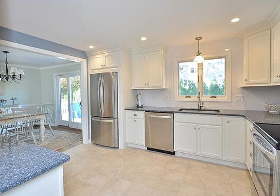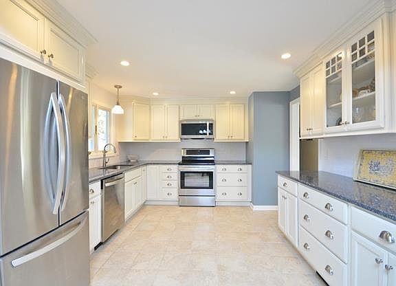 This meticulously maintained Raised Ranch is loaded with updates! Downstairs features 624 square feet of finished space with fireplace, half-bath, laundry room, and access to the two-car garage. Upstairs is a new custom kitchen with white cabinets, quartz counters, and stainless steel appliances. The kitchen opens to the family room and dining room, each with gleaming hardwood floors. Step through sliders to the new deck overlooking the level back yard. The updated hall bath has gorgeous updates including dual sinks in the oversized vanity. The home is clad in newer Hardie Board siding and is in an excellent commuting location yet on a quiet neighborhood street close to shopping, parks, pools, and library. Neat as a pin, clean as a whistle!