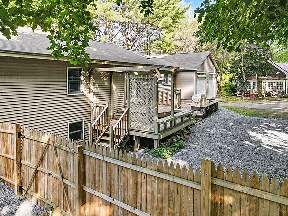 If you've been looking for a true turn key home right in town Gardiner look no further! With a fenced-in yard, two porches, a fireplace, two car garage, several lounging areas, and lovely landscaping, this property is ideal for many! Greeted with a charming stone wall at the drive which leads to the covered porch, step directly into the vast mud room—a prime place to kick off those shoes. Continue straight into the spacious, carpeted living area with a cathedral ceiling, skylight windows, and a remarkable two-sided gas fireplace. The open floor plan extends to the dining room and kitchen. The dining area contains wood floors and French double doors that access the backyard. The kitchen features an island with plenty of storage, tall and deep cabinetry, a double oven integrated into the brick wall, and an arch above the counter. Down the hall are three bedrooms with good-sized closets and one bathroom. Another bedroom on the right side includes a custom-built window seat and ample storage. In the finished, walkout basement, you'll find an additional space that can be finished off for a recreation room and an additional bedroom that leads into a large hallway (create a walk-in closet by adding shelving), and a stunning fully remodeled bathroom. The bathroom features a double sink vanity, a jacuzzi, and a freestanding shower. Tour this home now to envision what your future looks like living at 15 Plummer Court in Gardiner.