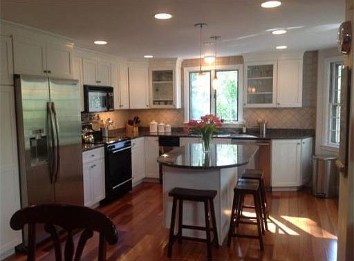 WONDERFUL OPEN FLOOR PLAN! Updated kitchen with granite, shrock cabinets and bay window overlooking deck, patio and woods. African cherry floors throughout most of the first floor. Library with fireplace, could be a guest room.Play room off the family room with skylights, built- ins and radiant heat,( not included in sq. ft.) perfect for the little ones. Private, professionally landscaped back yard, with large newer patio. Quiet side st. neighborhood close to transportation and Derby shops, lots of kids! Light, bright a pleasure to show and sell.