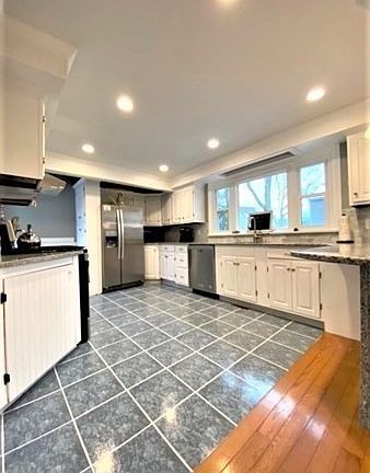 - Kit Dscrp: Window(s) - Picture, Countertops - Stone/Granite/Solid, Cabinets - Upgraded, Flooring - Stone/Ceramic Tile, Stainless Steel Appliances, Open Floor Plan, Recessed Lighting, Remodeled, Exterior Access, Peninsula, Closet - Double
