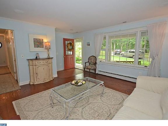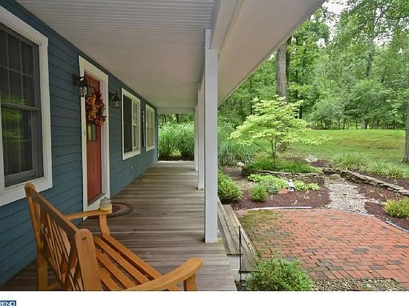 A little peace of heaven tucked away on one of the prettiest roads in Hopewell Valley. A wide front porch invites you into the living room of this home. Step futher into the kitchen /great room with built ins, stone fireplace, vaulted cieling, a wall of windows and sliders allowing nature to peek in. Multi level deck, with hot tub overlooks babbling brook and 2+ wooded acres. Master suite with private bath, plenty of closets. Two more bedrooms, family bath, hardwood floors, central air, laundry room and private office space complete the living area of this custom built home.