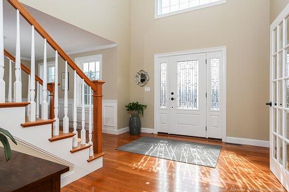 Better than new! Beautiful home sits at the end of a cul-de-sac abutting open space in great neighborhood of similar homes close to 93, schools, rail trail, town beach & shopping! Enter into gracious, open two story foyer. French doors to study or living room. Formal dining room with custom molding. Home boasts fully applianced upgraded kitchen with granite counters, tiled backsplash, center island, lots of cabinets, large pantry & slider to deck overlooking private backyard! Relax or entertain in the expansive family room with gas fireplace & gleaming hardwood flooring. Upstairs you'll find a spacious master bedroom with trey ceiling, spa like master bath featuring double sinks, tiled shower with glass enclosure & whirlpool tub. 3 additional generous sized bedrooms & full family bath with double sinks. First floor laundry room. Large lower level for potential expansion. 3 car garage & irrigation system. Painted in neutral colors throughout, nothing to do but unpack! Great opportunity!