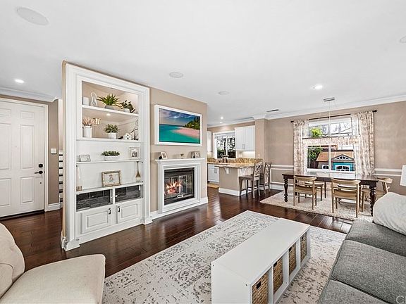 New to the market, this light and bright single-family, detached home w/ private driveway, is the bell of Potters Bend in Ladera Ranch! Tree Lined streets, amazing curb appeal, a cozy covered front porch and a 2 car attached garage welcomes you to your amazing new home. Easy living continues throughout the home, which extends approximately 1,703 square feet and displays 3 bedrooms, 2.5 baths, a loft with built-in desk and cabinetry, and an open living room, dining room and kitchen area on the first level. The living room boasts an elegant fireplace and custom built-ins, the dining room opens to the backyard, and the gourmet kitchen pampers chefs with granite countertops, white cabinetry, a nook, custom butcher block island, pantry, newer appliances, and access to a 2-car garage with storage and an epoxy floor. An impressive list of upgrades is led by hardwood flooring, crown molding, ceiling fans, newer interior and exterior paint, custom lighting and fashionable cabinet hardware and plumbing fixtures. Yes, RePiped! Crowned by a tray ceiling, the home's luxurious main suite reveals a walk-in closet, tub & separate shower w/ new enclosure and white cabinetry. Quaint yard space with synthetic grass, custom hardscape finished and a cozy firepit seating area! Trails and the dog park are close by, and Ladera Ranch's parks, shopping centers & award-winning schools are minutes away.