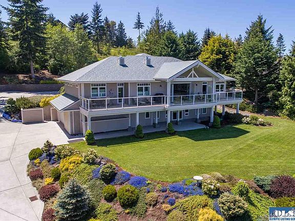 It's all about the views on Bell Hill...Lush verdant landscape with terraced gardens greet you as you move up the easy winding drive to this lovely 4 bedroom, 4 1/2 bath ocean and bay view home. Open the custom front door to those views... and living room with vaulted ceilings and multi paneled Nana doors that open to a wide covered deck to enjoy the Strait of Juan de Fuca, Sequim Bay, Protection Island, Mt. Baker and even the Cascade Mountain Range. Please know that Bell Hill does not allow B & Bs.