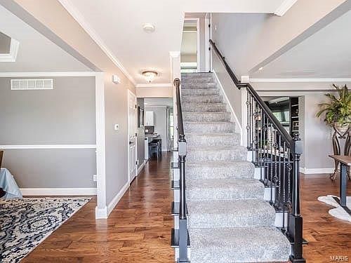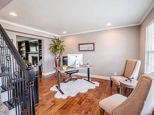 Updated 2 story offers 4 beds, 2 1/2 baths, and three car garage with newer garage doors/opener! Wood floors flow throughout the dining room, office/den, and great room! Wood burning fireplace with built in bookshelves! Kitchen has been updated with stainless steel appliances, granite countertops, and more! Refrigerator in kitchen stays! The spacious master bedroom has a vaulted ceiling and a large walk-in closet! Master bath has been updated with tile shower, frameless glass door, heated tile floor, and more! There are three other spacious bedrooms, Entire upstairs has newer flooring! The basement is partially finished and is a great place to enjoy a movie or game night with family and friends. Large back yard is fully fenced with deck and patio! Central Vac and Irrigation System!! 50 gallon water heater 2023, roof 2020, HVAC 2014! Windows on back of home (2022) with custom shutters and blinds! Newer lighting throughout home, freshly painted, all baths updated and more!