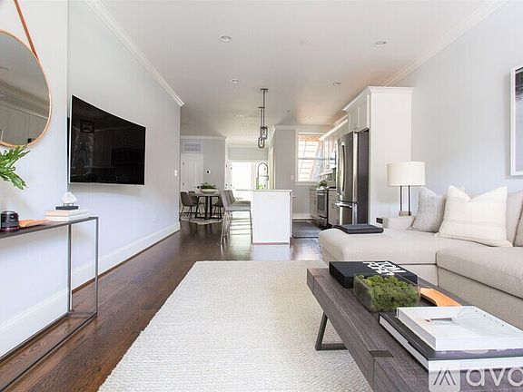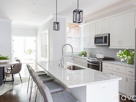 A stunning, newly renovated 3-bedroom, 2.5-bathroom, 2-story condo located on a quiet tree lined street in Eckington. The main floor features a spacious and bright open plan living room, large windows, high ceilings, modern entertainment kitchen with high-end stainless steel appliances, a gas range and a spacious island with Carrara marble countertops and backsplash throughout. The kitchen flows into a sizeable dining area, powder room & peaceful den/study/sunroom and out onto a giant private deck. The lower level features three bedrooms and two luxury bathrooms (master bedroom includes a walk-in closet and ensuite bathroom), laundry closet with high-end washer/dryer and ample storage. Hardwood floors throughout entire condo. Located just a few blocks from an abundance of new retail/restaurants (Big Bear Cafe, Red Hen, Etabli, Union Kitchen ect), brand new Alethia Tanner Park, Eckington Dog Park and the MBT Trail. Short walk to NoMa-Gallaudet Metro (redline), Trader Joes, Harris Teeter and Union Market. Utilities included: gas and water. Cats and small dogs permitted. Available Now. $4,350/month rent, one month security deposit required.