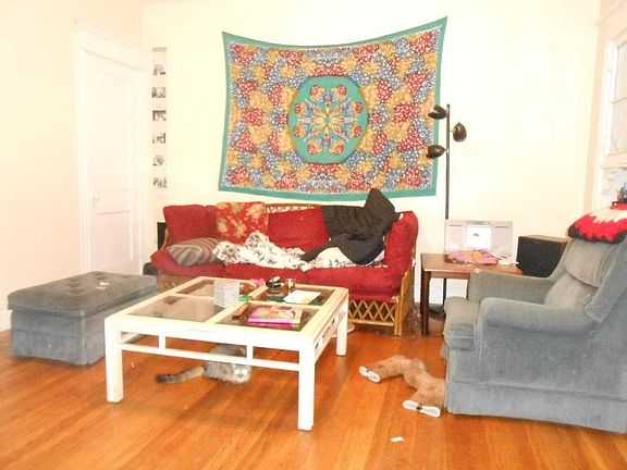 Large 3 bed with bonus room! Unit has hardwood floors, large bedrooms with good closet spae, an EIK with room for a small table and a porch off the kitchen. Laundry in the building. Utilities are not included Oil heat Conveniently located at Quint/Brighton Ave. B line is a few blocks away and the 66 and 57 are around the corner NO FEE, 9/1, Students OK, Cats OK
