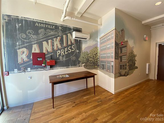 Downtown Asheville, move-in ready condo available in Rankin-Press Lofts. This one bedroom unit boasts hardwood floors, an open floor plan with exposed ceilings and brick walls. Bedroom has a custom built in-closet. Bath includes concrete counters, tiled shower/tub, and tile floors. Walk to one of the many nearby restaurants, breweries, music venues, and shops. The stainless steel appliances, concrete counters, tile back-splash, and custom cabinetry in the kitchen make staying in a great option as well. Enjoy fresh mountain air and downtown city views while relaxing or entertaining on your private 250+ square foot deck. The condominium building has a lobby enhanced with art, a solar heated water system, and storage locker in the basement.