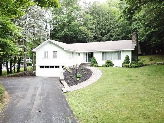 ALMOST AN ACRE WITHIN THE CITY! This beautiful ranch has all the living space you could ask for, both inside and out. From the front door you walk into the large living room with a wood burning fireplace that opens to the dining room with built in corner cabinets with oak hardwood floors. Just through the dining room you'll find the kitchen with another dining leading into the blue stone patio porch. The laundry room is off the kitchen with new stackable washer and dryer. 3 bedrooms having oak hardwood floors are just down the hall from the living space along with the 1 full and 1 half baths. Downstairs there is a den/office area with plenty of storage. Off the den to the large 2 car garage with a 1/4 bath and sink for your work shop. Outside; You can relax and entertain on this nice landscaped back yard with an open and covered blue stone porch. Just shy of an acre of property allows you to own a nice piece of woods along with stone walls large lawn, mature trees for shade and gardening area. This home is a must see Ranch with a nice layout , one floor living, large gracious rooms, plenty of storage, 2 car garage, built with quality in mind and centrally located just steps to Oneonta state college.