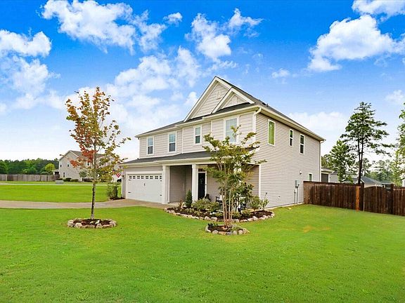 Welcome to 15 Rawls Meadow Ln in Fuquay-Varina, North Carolina! This stunning property was built in 2019 and offers a beautiful Single Family home with 4 bedrooms, 2 1/2 baths, plus first floor office (Could be a 5th bedroom) and a spacious finished area of 2,656 sq.ft. The home is spread across 2 stories and sits on a generous lot size of 28,075 sq.ft. As you approach the property, you will be greeted by a charming exterior with stylish landscaping with Tennessee River stone and a welcoming front porch. Step inside to discover a modern and well-designed interior that exudes elegance and sophistication. So many upgrades with tens of thousands in upgrades to the backyard with patio, fencing and sod. New solid oak hardwood staircases and hardwood hallway throughout the upstairs. The main level features a bright and open floor plan with a spacious living room, a gourmet kitchen with high-end appliances and a large island, and a dining area perfect for entertaining guests. Upstairs, you will find the luxurious master suite complete with a walk-in closet and a spa-like ensuite bathroom. Three additional bedrooms upstairs provide plenty of space for family or guests, and there is a full bathroom for convenience. 1 year old carpet throughout bedrooms in immaculate condition. The home also includes a laundry room for added convenience. Outside, the property features a backyard that is perfect for large outdoor gatherings and activities. Enjoy the tranquil surroundings and the fresh air as you relax on the spacious patio or play in the massive yard padded with Bermuda sod. So many entertaining spots including a fire pit, a natural sitting log tree, boulders to play or relax on, a large mulched playground and options for fun or entertaining galore. Located in Fuquay-Varina, this home offers a peaceful and picturesque country setting while still being close to all the amenities and conveniences of the city. With easy access to shopping, dining, schools, parks, and more, this property truly offers the best of both worlds. There is a private portion of the side yard fenced off with a lower fence that offers visibility ideal for a smaller child's play yard or a pet! Home occupied by non smokers and pet free. Yard is double gated on both sides in back, vehicle accessible to the back yard. Move in ready. Many amenities can convey and are negotiable, including washer and dryer, garage workbench and cabinets with butcher block tops, Lifetime swingset, and trampoline. 2 year new and large shed fully paid and conveys with home purchase. Don't miss your chance to own this exquisite property at 15 Rawls Meadow Ln. Contact us today to schedule a showing and make this your new dream home!